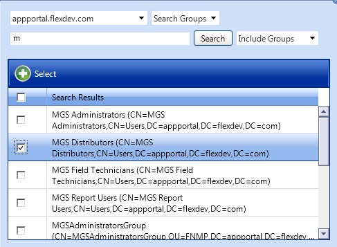 7. Search for the group, OUs, AD property, collection. or Intune Group you want to add and place a checkmark next to a item in the search results.