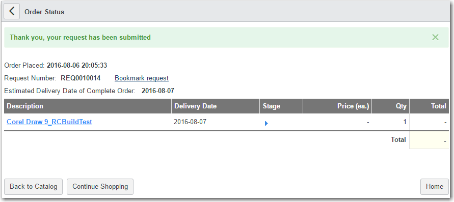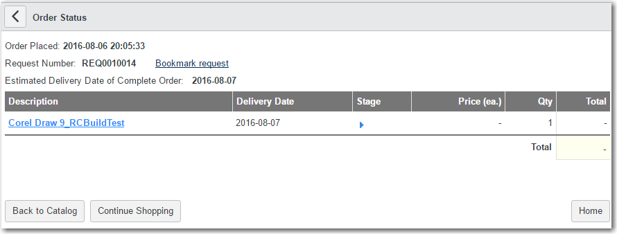 - Click on the Number of the request you just submitted. The Order Status page is displayed.