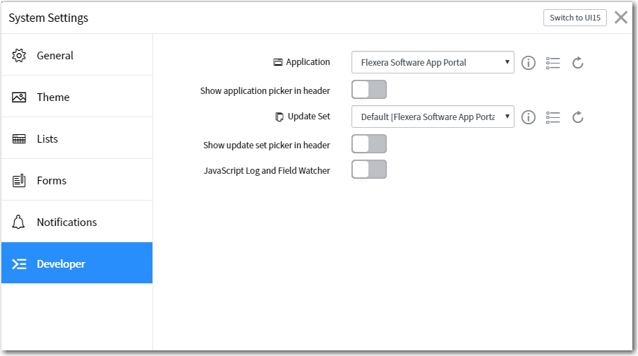 Flexera Software App Broker Update Set for ServiceNow.xml) from the Flexera Software Product and License Center. - Open your ServiceNow instance.