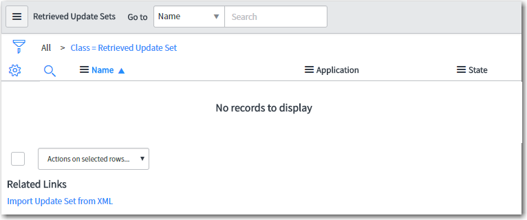 - In the search results, click Retrieved Update Sets . The Retrieved Update Sets page opens.