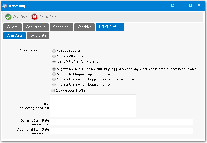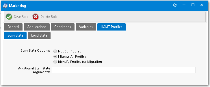 User state migration refers to the process of transferring user persona information and settings between using the Microsoft User State Migration Tool (USMT), a command line utility program. You can configure a role in App Portal to migrate user profiles with USMT by intelligently detecting the user details to migrate based on role conditions.