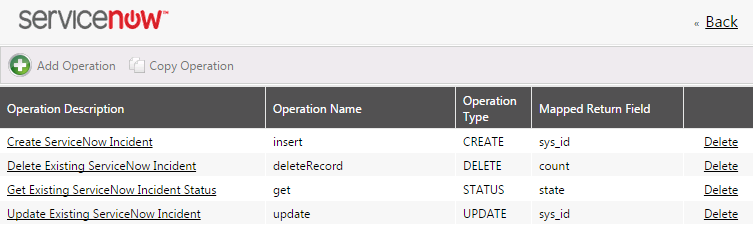 - If you are connected to Service Now, two services are listed: