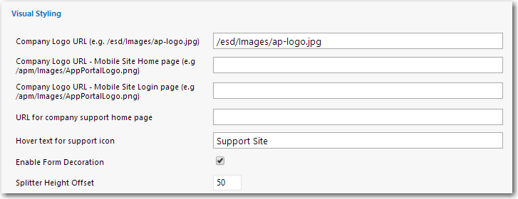- This field lists the location of the company logo that appears at the top left of all App Portal screens. By default, the location of the App Portal logo is listed in this field: